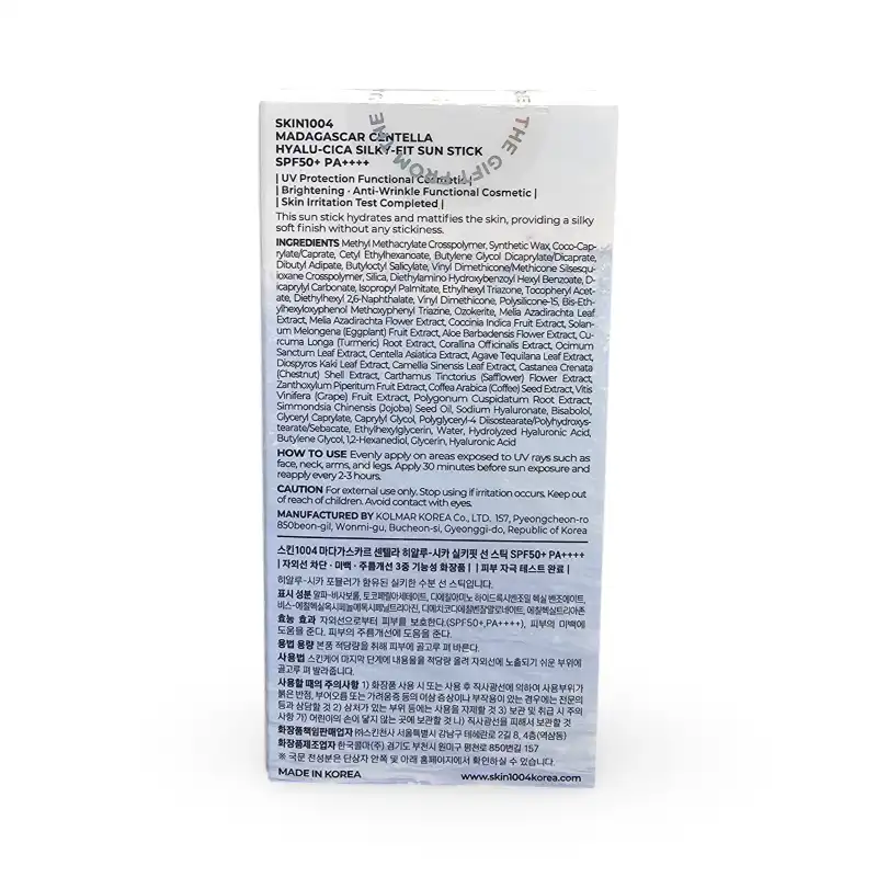 استیک ضد آفتاب سبک و ماتکننده اسکین 1004 با SPF50+، حاوی عصاره سنتلا و هیالورونیکاسید، محافظت کامل در برابر آفتاب بدون چسبندگی و مناسب برای پوستهای حساس و چرب