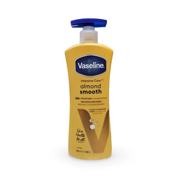 لوسیون وازلین Almond Smooth با روغن بادام و لیپیدهای مرطوبکننده، تا ۴۸ ساعت پوست را آبرسانی و نرم میکند