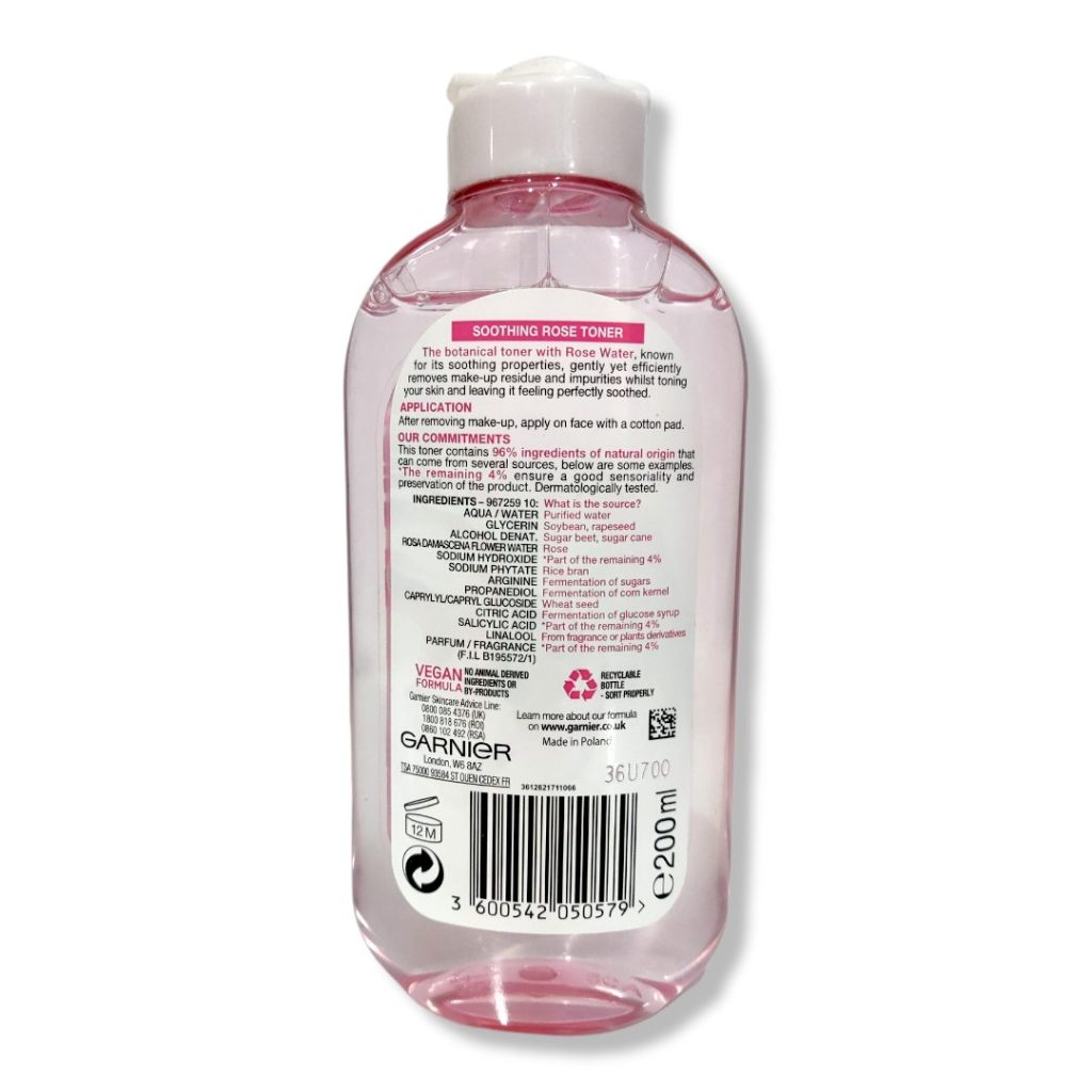 تونر گارنیر حاوی عصاره گل رز با کنترل ترشح چربی پوست، پوستی شاداب برای شما به ارمغان می آورد این تونر گارنیر، هر نوع آلودگی و ذرات باقی‌مانده روی پوست را پاک کرده و به پوست صورت جانی دوباره بخشیده و پوست را شاداب می‌سازد. این محصول نه تنها باعث التهاب، قرمزی و برافروخته شدن پوست های حساس نمی شود، بلکه پوست را تسکین می‌دهد.