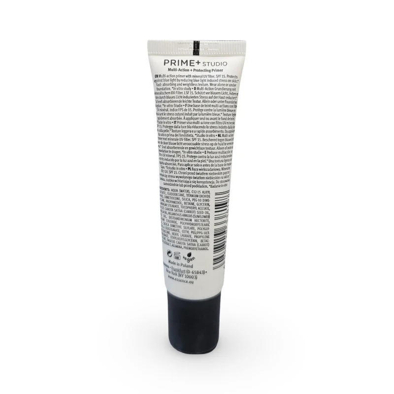 پرایمر چندکاره محافظ اسنس SPF15 – پرایمر اسنس Prime+ Studio Multi-Action + Protecting با SPF 15 از پوست شما در برابر اشعه فرابنفش، نور آبی و آلودگیهایمحیطی محافظت میکند. این پرایمر چندکاره حاوی فیلتر UV معدنی و فرمولی سبک است که بدون ایجاد سنگینی یا مسدود کردن منافذ بهآسانی جذب پوست میشود. استفاده از این محصول علاوه بر ایجاد لایهای محافظ، پوست را برای آرایش آماده و صاف میکند، ماندگاری آرایش را افزایش میدهد و در عین حا