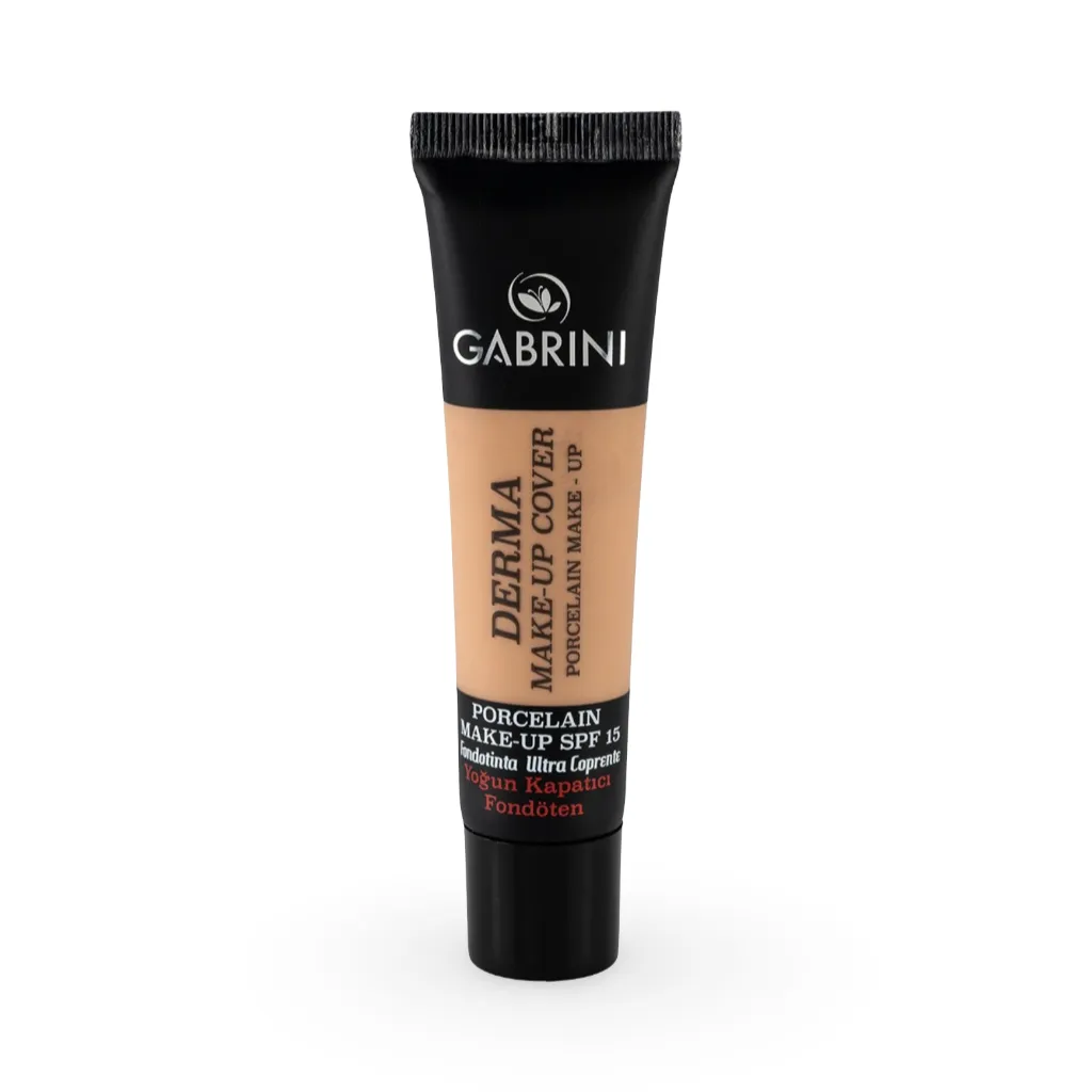 کرم پودر درما کاور گابرینی 40 میل با پوششدهی فوقالعاده بالا و ماندگاری 24 ساعته، ظاهری مات و یکدست به پوست بخشیده و حاوی SPF 15 برای محافظت از صورت است.
